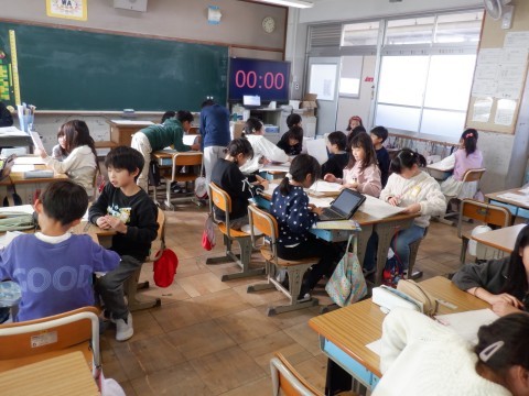 道徳、総合の時間です。道徳の時間は、国際理解について学んでいます。各国の伝統衣装や風習、料理などを調べてその国の理解につなげていこうとしています。今はグローバルな時代です。大事な学習です頑張ってください。