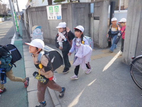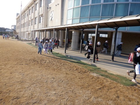 1日の活動が終わって下校していきます。今日は特に走ったり、追いかけ合いをしながら下校する児童が多く、あっという間に下校していきました。明日も元気に頑張りましょう。