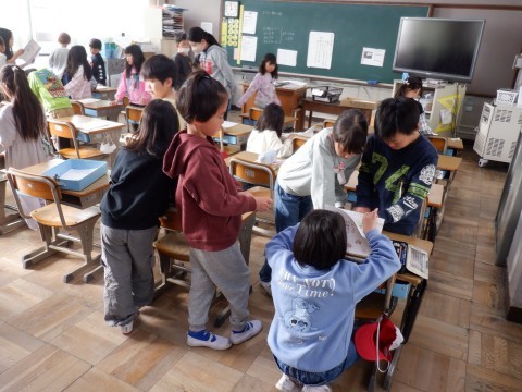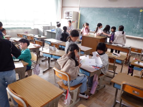全クラス国語の授業です。音読劇の練習をしました。「お手紙」という作品です。みんな登場するカエルさんやナメクジさんになりきって、しっかり練習していました。