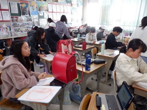 図工の時間です。はとぶえの作品などを描いています。6年生は徐々に卒業が近づいてきています。はとぶえの作品もあと何回描くでしょうか。少し寂しいですね。