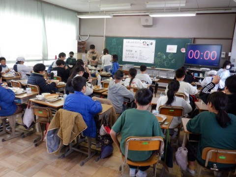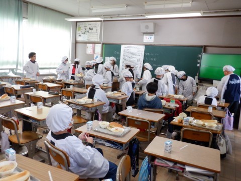 みんなで協力して準備を進めています。今日はパンメニューの日です。配膳もスムーズに進みました。みんなで楽しくいただきましょう。