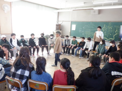 5年生もお楽しみ会をしています。爆弾ゲームやクイズ、出し物などいろいろ考えて楽しんでいます。みんなでこうして過ごすことでクラスの雰囲気もますますよくなっていきます。みんなでなかよくしてください。