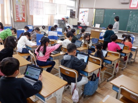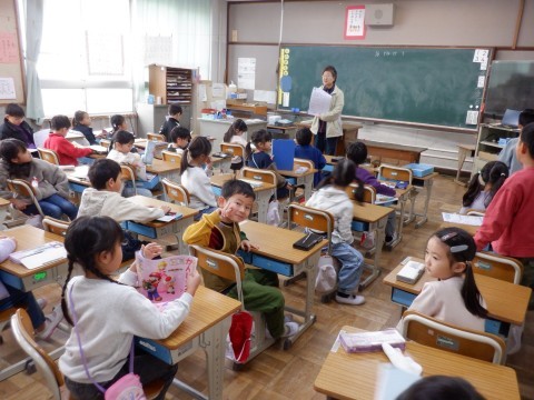 国語、学活、算数の授業です。国語の授業では、冬休みの宿題の確認テストをしました。みんな頑張っていました。その後、タブレットを使って漢字の学習をしました。