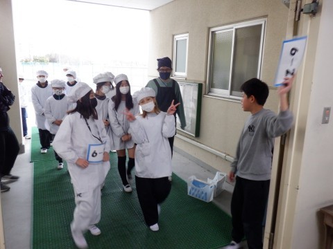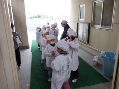給食係が給食を取りに来ています。3学期初めての給食です。それでもみんないつも通りの手順で来ました。「いただきます。」の大きな声が響きました。