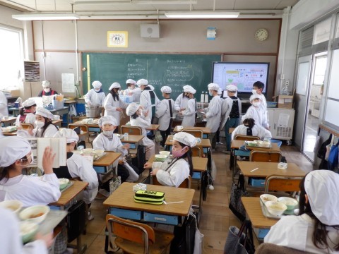 今日は配膳がいつもより多く、給食係さんは大忙しでした。それでもみんな協力して準備を進めています。給食係さん いつもご苦労様です。
