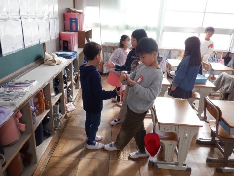 今日も過ごしやすい昼休みなので、多くの児童はグラウンドに出て遊んでいます。しかし、教室で過ごしている児童もいます。お話したり、タブレットを使ったりしています。1年生は昔遊びをしている児童もいました。興味のあることがそれぞれのようです。