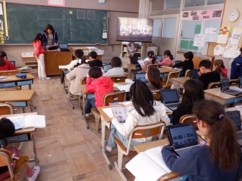全クラスとも国語の授業です。ロボットの学習です。ロボットで考えたことを友だちに伝えます。うまく伝えられるでしょうか。しっかり頑張ってください。