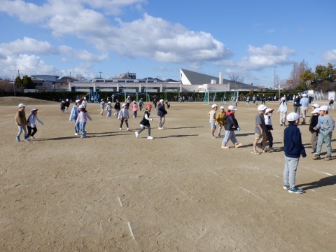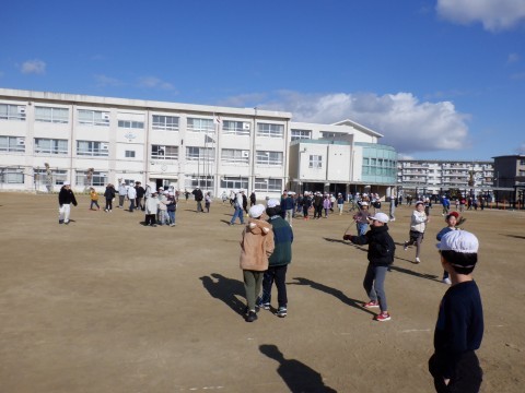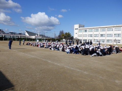 休み時間に地震がおこり、その後火事が発生したとの想定で訓練が行われました。初めに地震が起こりましたとの放送が入るとグラウンドで遊んでいた児童は指示もないところで遊びを止めてグラウンドの避難場所に集まり始めました。火事発生の知らせとともに校舎からも児童が出てきました。とても素早い行動でした。