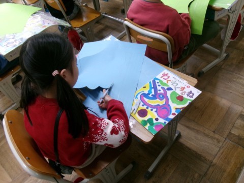 図工・算数・体育の様子です。図工では,「つくってへんしん」に取り組んでいました。背中に羽をつけるか,手に羽をつけるかを選んで,線に沿って切っていました。どんな羽で変身するのか楽しみです。