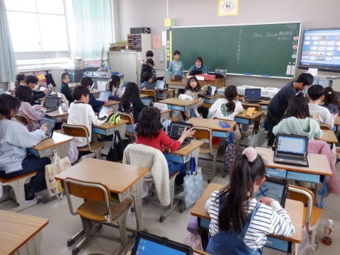特活、図書の時間です。図書の時間は図書室で自由に本を読んでいます。子どもたちは読書が大好きなので、それぞれの好みに合わせて本を選んでいます。イキイキとした姿が印象的です。