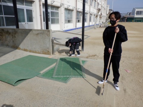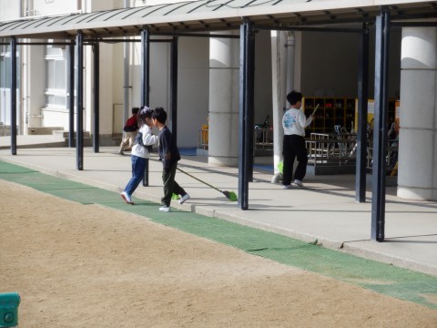 外回りや体育館のそうじのようです。外回りは、この時期は特にきれいにしてもきれいにしてもすぐに土が上がってしまいます。でも、きれいにしとかないと土だらけになってしまいます。いつもご苦労様です。