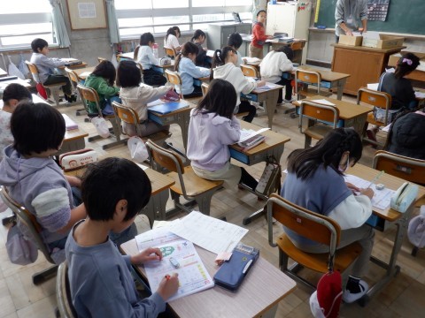 朝学習に取り組んでいます。漢字や計算の基礎的な練習をしています。短い時間ですが、学習には貴重な時間です。しっかり頑張りましょう。