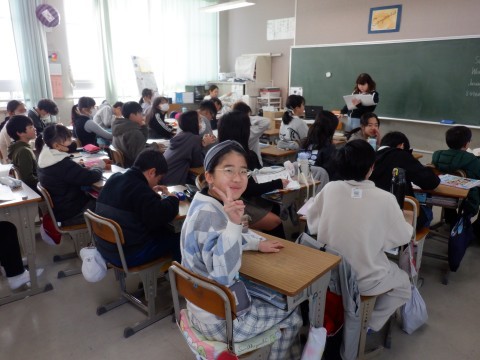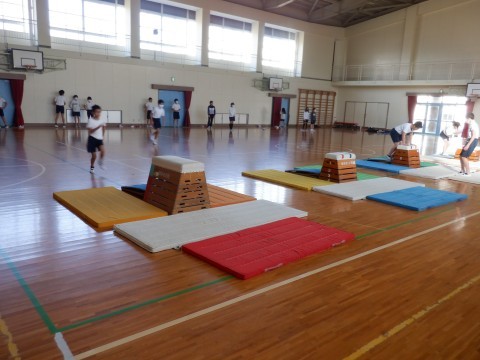 外国語、体育の授業です。体育は体育館で跳び箱の運動です。台上での前転、足を抜いての跳び越しなどいろんな技に挑戦しています。きっとうまくいきます。思い切って跳んでみましょう。