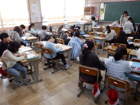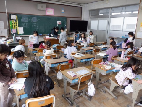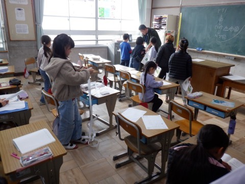 算数、国語、図工の時間です。算数の授業は、長さについて考えました。紙を細く切って繋げて長くしています。簡単に何メートルと口にしますが実際にはどんな長さなんでしょうか。試してみてください。
