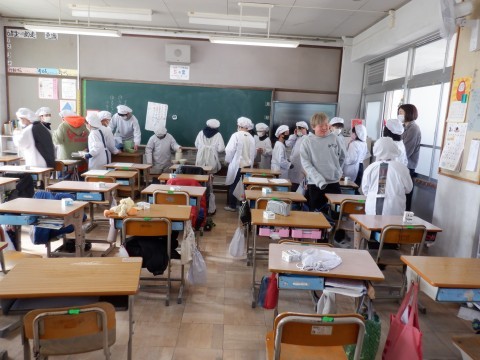 5年生の給食準備の様子です。