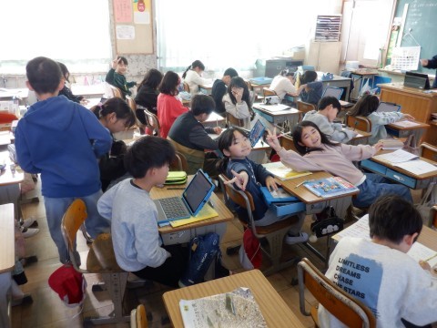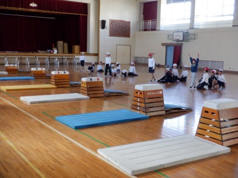 体育、自主学の時間です。体育は、とび箱です。最高4段だったのが5段に増えました。勢いよく跳ぶことができるかな。さあチャレンジです。
