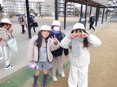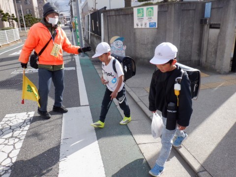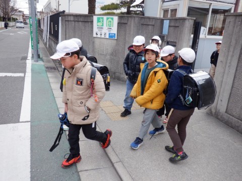 日差しがあれば暖かいですが、陰るとぐっと冷え込みます。児童たちは元気に下校していきます。
