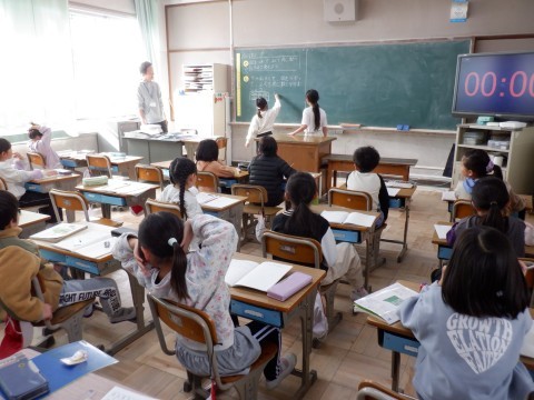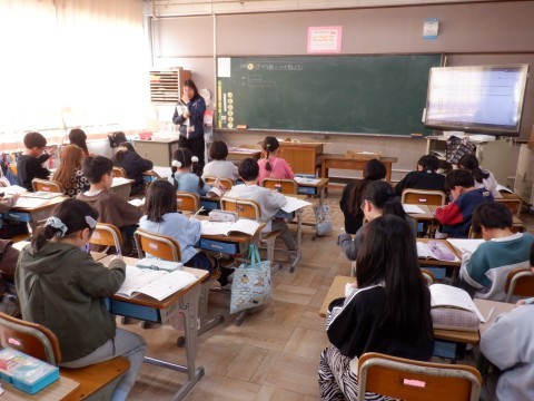 全クラス算数の授業をしています。「ばいと分数」の学習をしています。ことばでばいというのも間違いやすいところです。分数もそうですね。この単元では、図を使ってばいも分数も概念を形成しています。難しいけど頑張ってください。