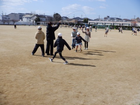 今日も晴天に恵まれ大勢の児童がグラウンドに出て遊んでいます。なわとびやドッジボールもたくさんの児童が遊んでいますが、フラフープの大人気です。元気にグラウンドで遊んでいます。