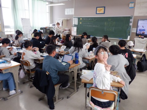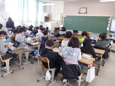 図工、理科の授業です。理科の授業はプログラミングの授業です。ロボットやソフトを動かすためのプログラミングです。その基礎を学びます。機械に命令を出すのは口で説明するより難しいのか簡単なのか。頑張ってみてください。