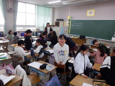理科、算数の授業です。理科の授業は、物の重さを調べています。粘土を使って形が変わっても重さは同じなのかどうかを調べました。さあどうだったでしょうか。重さの性質をしっかり考えてください。