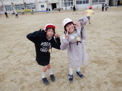 日差しはないものの暖かい1日でした。児童たちは元気にグラウンドに出て遊んでいます。なわとび、フラフープも盛んです。サッカーやドッジボールで遊んでいる児童もいます。みんな楽しい時間を過ごしています。
