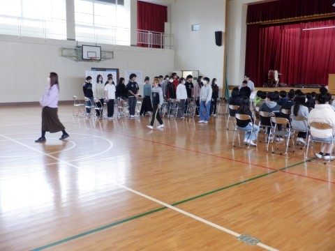 午後からは体育館で卒業式の練習をしました。もうそんな時期なんですね。入場のし方やあいさつのタイミング、みんな揃ったほうがきれいですね。1つひとつ確認しながらゆっくりと進めていきました。みんなしっかり話を聞いてよい式になるように頑張りました。