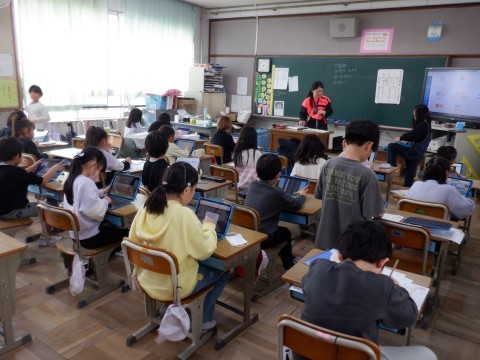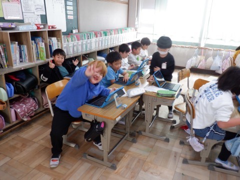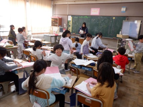 生活、国語、道徳の授業です。道徳の授業は、「友だちとなかよくすることをかんがえよう」をテーマに話し合いました。乱暴者のくまさんがブランコをひとりじめしたり、壊してしまったりしたとき、ウサギさんやサルさんはどうしたらよいでしょうか。意見をだしあいました。