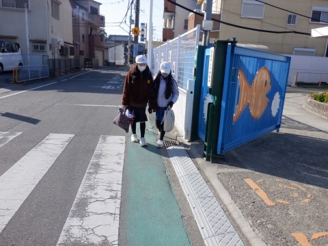 3月16日(月)朝の登校の様子です。