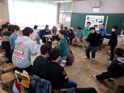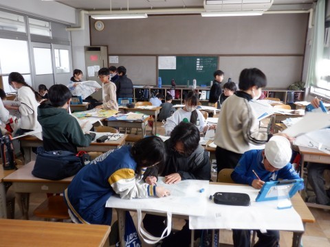 特活の授業です。お楽しみ会をしました。いろんなゲームや出し物などクラスで考えて楽しみました。写真はビンゴゲームです。