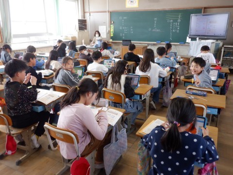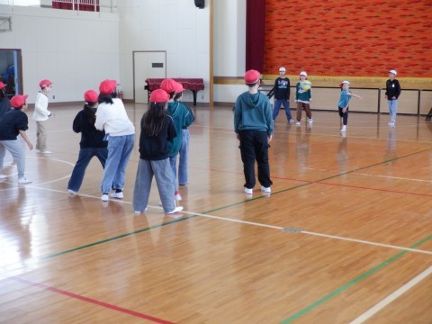 特活の授業です。体育館でドッジボールを楽しんでいました。高学年が使うバレーボールではなくやわらかいソフトバレーボールを使ってしています。みんなドッジボールを楽しんでいます。