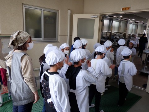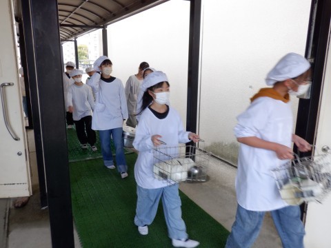 各教室に運びます。今日はおかずが3品あるので少し重いかもしれません。給食係さんご苦労様です。