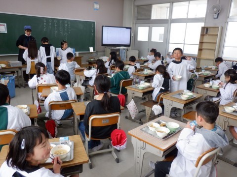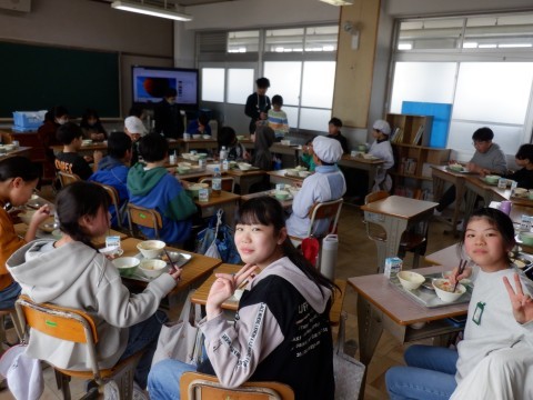 学年最後の給食です。みんな楽しくいただきました。机を並び替えてみんな笑顔で食べているクラスもありました。いい1年だったでしょうか。