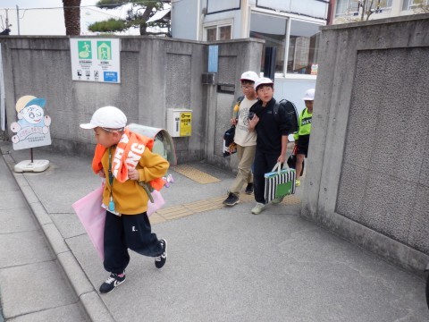 少し雨がぱらつく時間帯もありましたが、児童たちが元気に下校していきます。今日は楽しい時間があったり、そうじで一生懸命きれいにしてくれたり、忙しい1日でした。ご苦労様です。明日はいよいよ修了式、最後もしっかりまとめましょう。