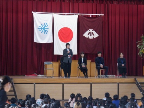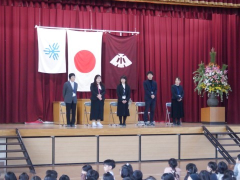 今年度で離任される先生方の紹介とお一人おひとりからあいさつをしていただきました。先生方のお話に涙ぐむ子どもたちもいました。長い間本当にありがとうございました。