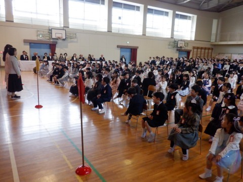 校長先生のことば、PTA会長のお祝いのことばがありました。白鷺小学校で楽しく6年間を過ごしてください。