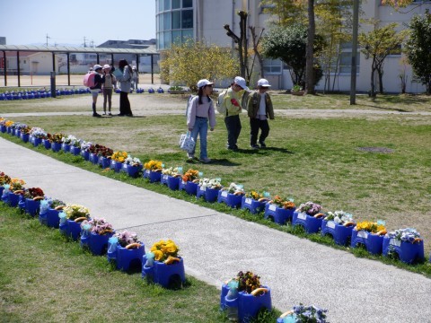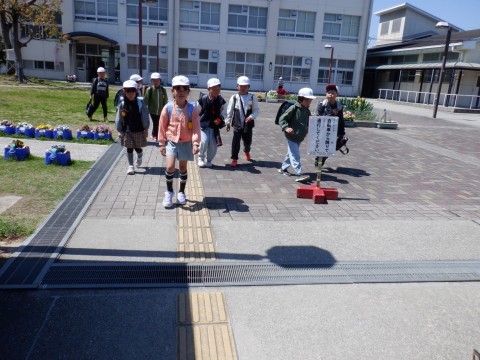 春の青空の下、児童たちが元気に下校していきます。新しいクラス、新しい先生はどうだったでしょうか。新しい学年で気持ちも新たにしてしっかり頑張りましょう。明日も元気に登校してきてください。