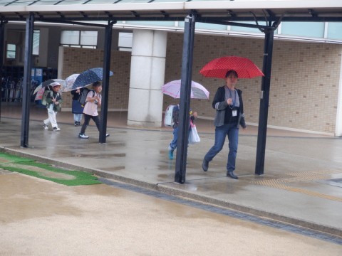 今日は雨模様なので、体育館前で集まらずに校舎内で下校の集まりをしました。集まった地区から順次下校していきます。今週は初めての学校で疲れたと思います。週末はゆっくり休んでください。