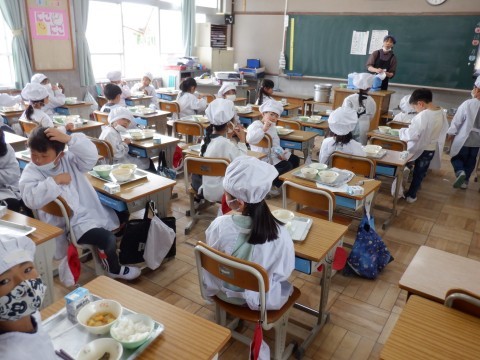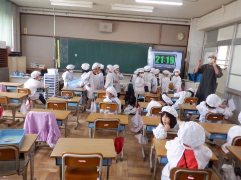 2年生だけでなく全部の学年で久しぶりの給食です。スムーズに準備できたかな。4時間目が体育や移動教室で出発が遅れるクラスもあります。みんな協力して準備してるかな。今年も楽しい給食の時間にしましょう。
