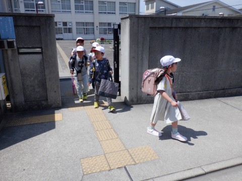 日差しはかなりきつくなり、暑ささえ感じられるようになりました。1年生は今日も集まって下校していきます。気をつけて帰ってください。明日も元気に登校してきてください。