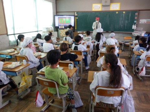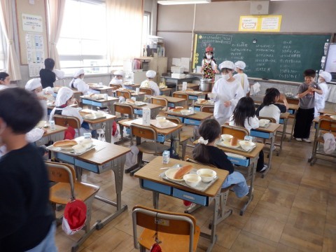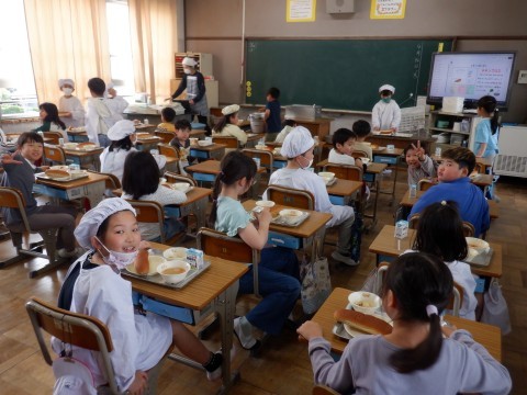 3年生も手際よく準備を進めています。パンの日は少し早く準備ができるようです。どのクラスもいただきますを待つばかりです。