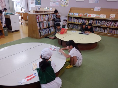 図書、算数の授業です。週1回の図書の時間です。図書室で自由に本を読んでいます。子どもたちは本が大好きです。みんな静かに本を読んでいました。
