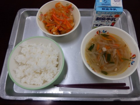 鶏のから揚げ野菜あんかけ、春雨スープ、ごはん、牛乳です。今日の鶏のから揚げ野菜あんかけは子どもたちが大好きなメニューです。しっかり食べていました。
