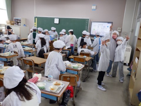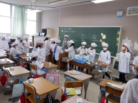 4年生になると準備にも余裕が感じられます。あわてず落ち着いた中で準備が進められています。きっと楽しい給食時間になると思います。