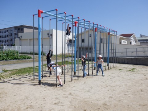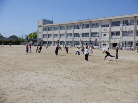 今日はカラッと晴れたとても過ごしやすい日でした。昼休みも大勢の児童がグラウンドに遊びに出ています。遊具で遊んでいる児童、ボールで遊んでいる児童、木陰などでお話している児童など様々です。でも、みんな楽しそうです。