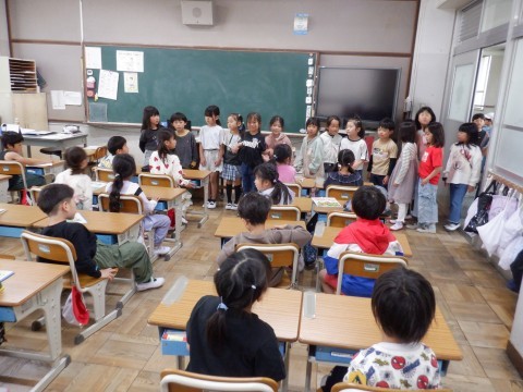 1年生に昨年獲れた「朝顔」の種をプレゼントしました。1年生はこれからの生活の授業で朝顔を育てます。途中の成長や花や種のでき方などもしっかり学習してください。