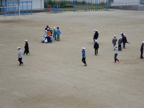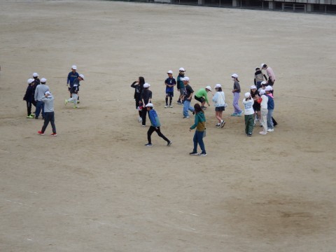 5年生は、体育大会に備えてグラウンドの石ひろいをしました。