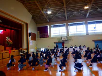 新入生は校長先生のお話を良い姿勢で静かに聞くことができました。素晴らしいです。