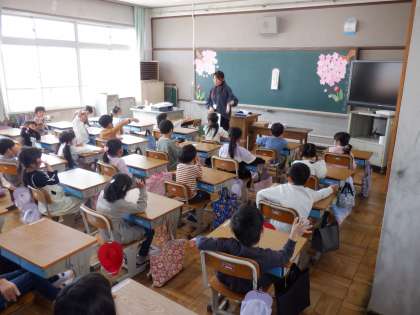 1年生は、学習の準備やトイレの使い方など、担任の先生から教わりました。少しずつ慣れていってほしいと思います。