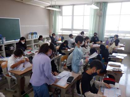隣のクラスでは、教科書等を整理し、学級開きの準備をしていました。